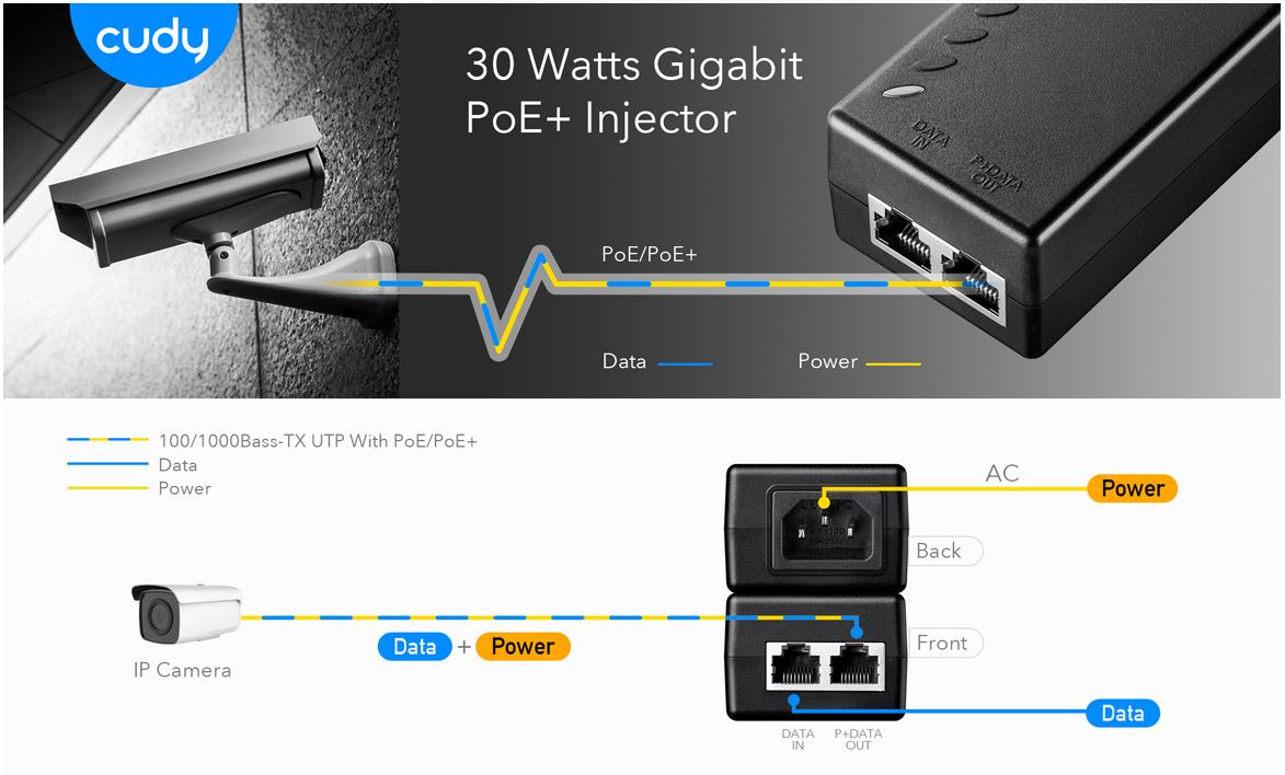 CUDY POE200 30W GIGABIT POE+/POE INJECTOR