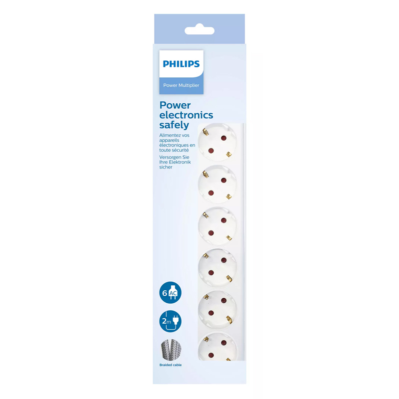 Πολύπριζο ρεύματος της Philips με 6 πρίζες schuko για την τροφοδοσία των ηλεκτρικών σας συσκευών.